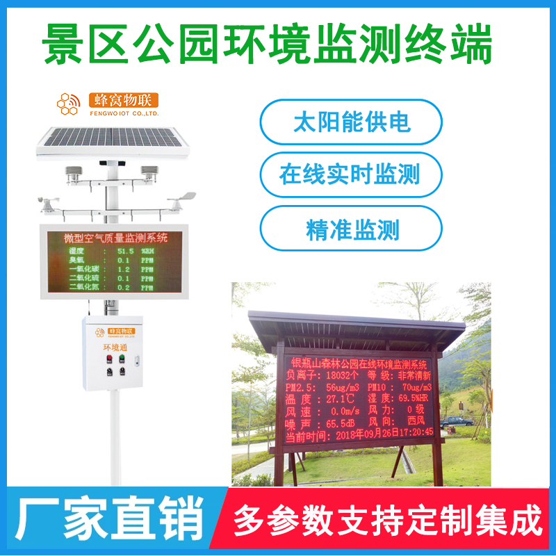 天眼·环境通是蜂窝物联自主研发的景区环境监测设备,从生态环境保护【对管理】和环境信息发布【对游客】两个方面,将环境实时监测和显示发布融为一体,一站式的帮景区解决了从现场环境数据采集、数据存储分析、显示发布和数据管理的技术和应用问题。广泛用于用于林区、景区、山区、自然保护区或指定区域对空气中负氧离子及PM2.5浓度进行连续测试,以及实时数据发布(可通过LED显示屏发布或联网政fu网站、旅游委网站、气象环监网站对外发布)。用于展示林区或景区、山区的植树造林、环境治理成果及该地区空气的清新程度,为政fu相关部门提供相关环境数据,同时为当地生态环境进行宣传。